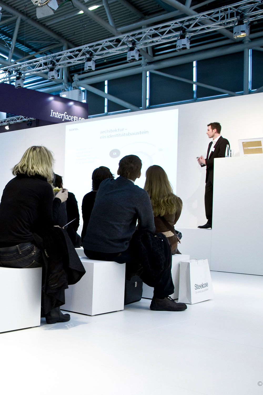 Entwicklung einer Markenstrategie für die Kommunikation im Raum, Ausarbeitung von Markenwerten für räumliche Anforderungen / Entwicklung einer kreativen Leitidee für die jeweilige Bau- oder Messeaufgabe, Vernetzung der bestehenden Corporate Identität mit dem Corporate Design / Gestaltungskonzeption für die visuelle Kommunikation im Raum 2D & 3D / Konzeption einer Corporate Architecture Guideline zur räumlichen und architektonischen Darstellung von Marken und Unternehmen