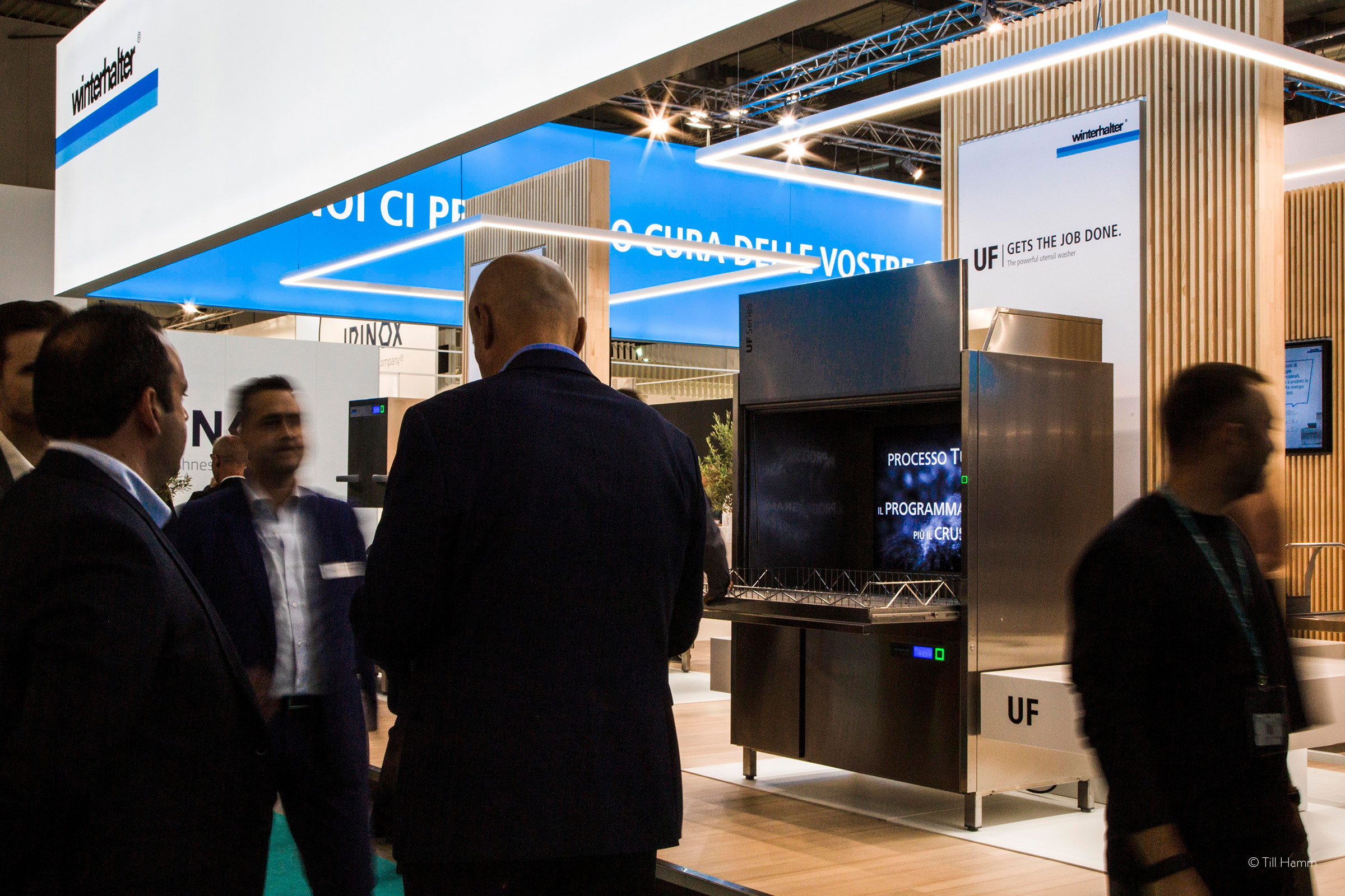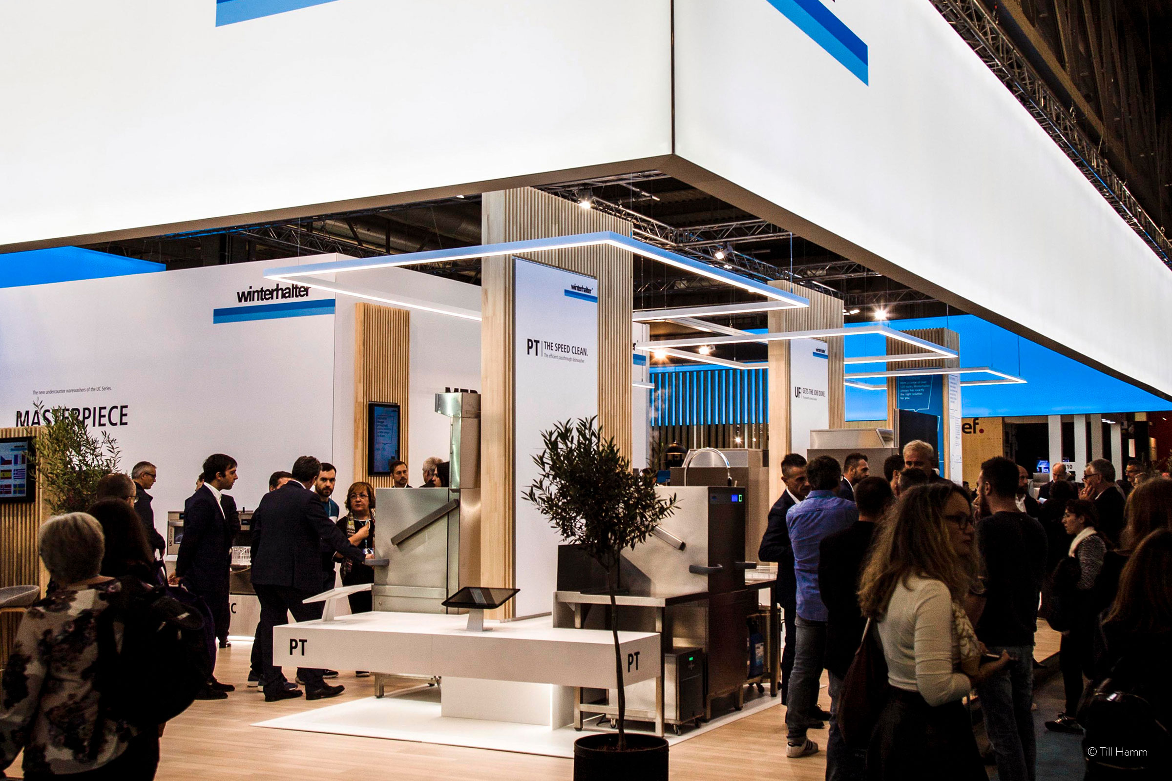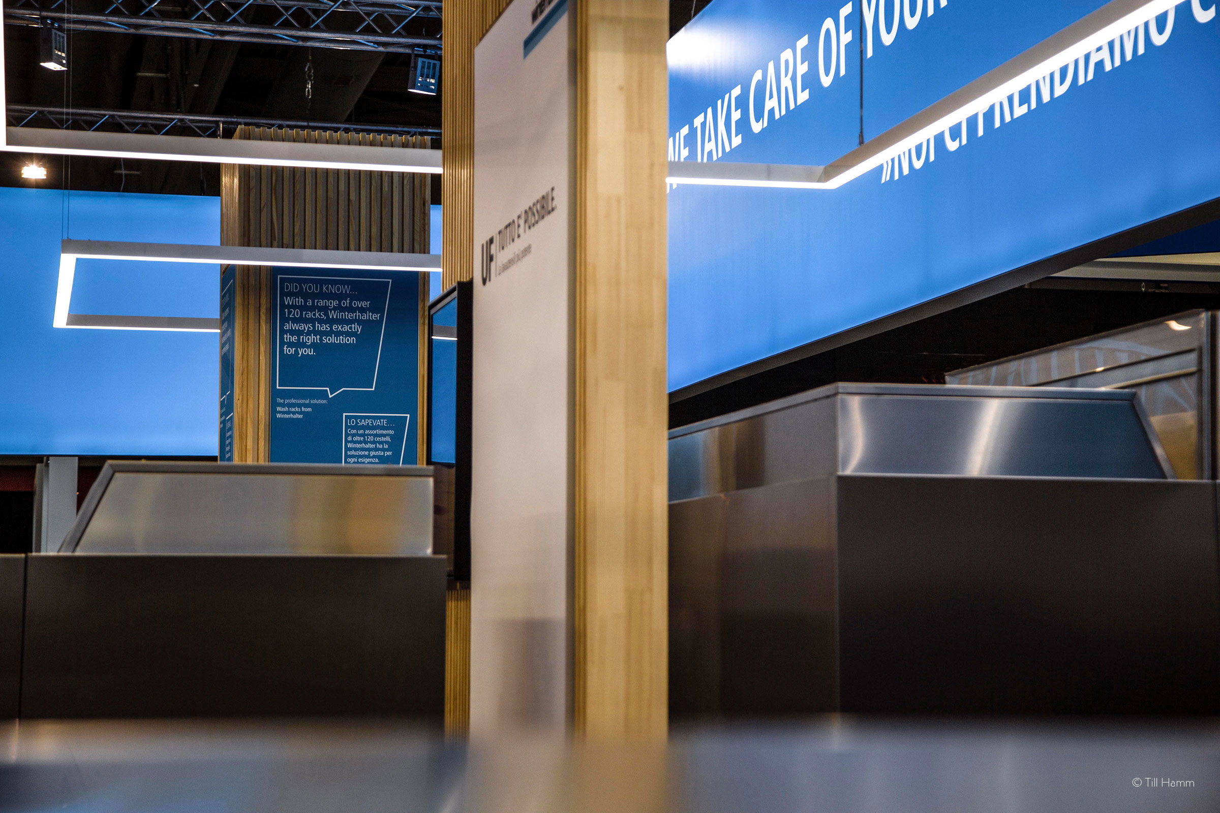 Winterhalter ist Gesamtsystemanbieter für gewerbliche Spültechnik und mit 40 Niederlassungen weltweit ein Global Player. Klarheit, Wohlfühlatmosphäre und die Spülmaschinen sollen erlebbar sein. Diese Anforderungen wurden im übergeordneten Messekonzept für Winterhalter festgelegt. Das erste Konzeptergebnis für die Host in Mailand 2019: Ein selbstbewusster Messestand, der den Maschinen eine Bühne gibt. Und durch die Mischung aus natürlichem Holz mit der Markenfarbe Cyan entsteht eine entspannte Atmosphäre zum Bleiben und Wohlfühlen. Das Messestand-Konzept ist modular aufgebaut, kann auf verschiedene Messestände flexibel adaptiert werden und ist auf die Verwendung von mehreren Jahren ausgelegt. Messestand Realisierung durch Gielissen Exhibition, Göppingen.