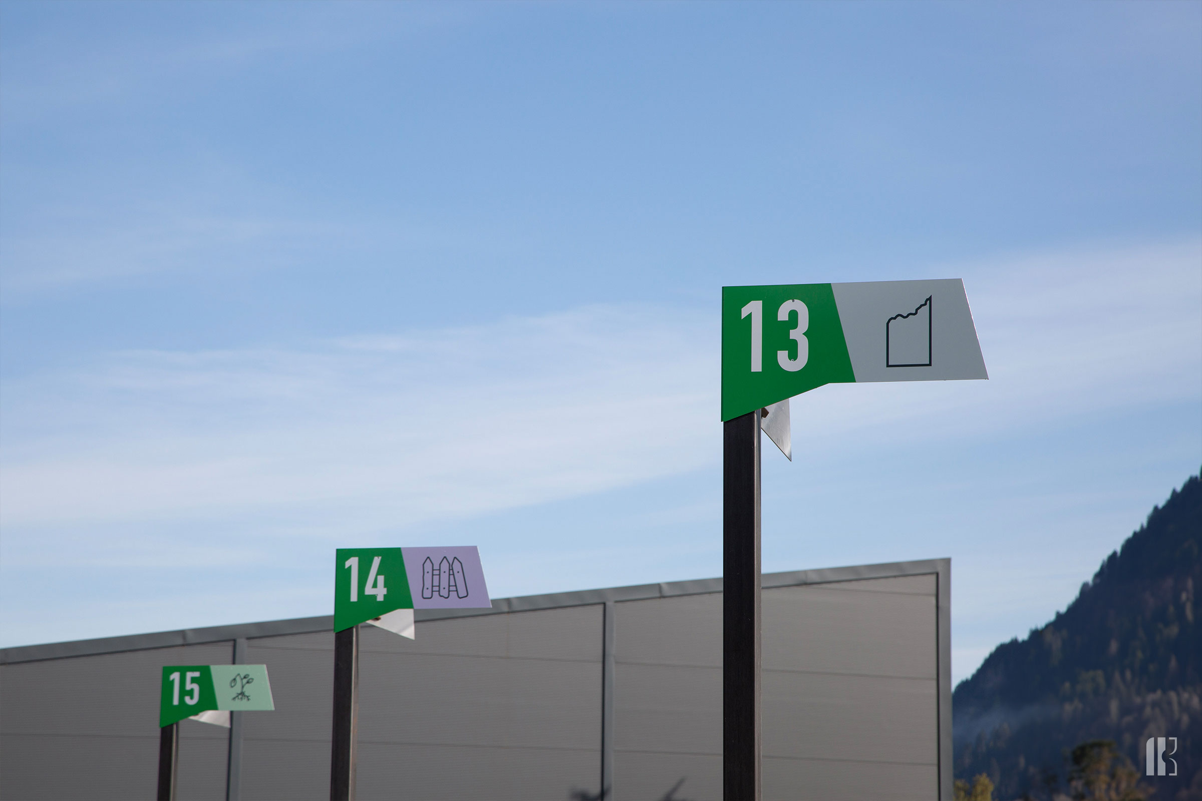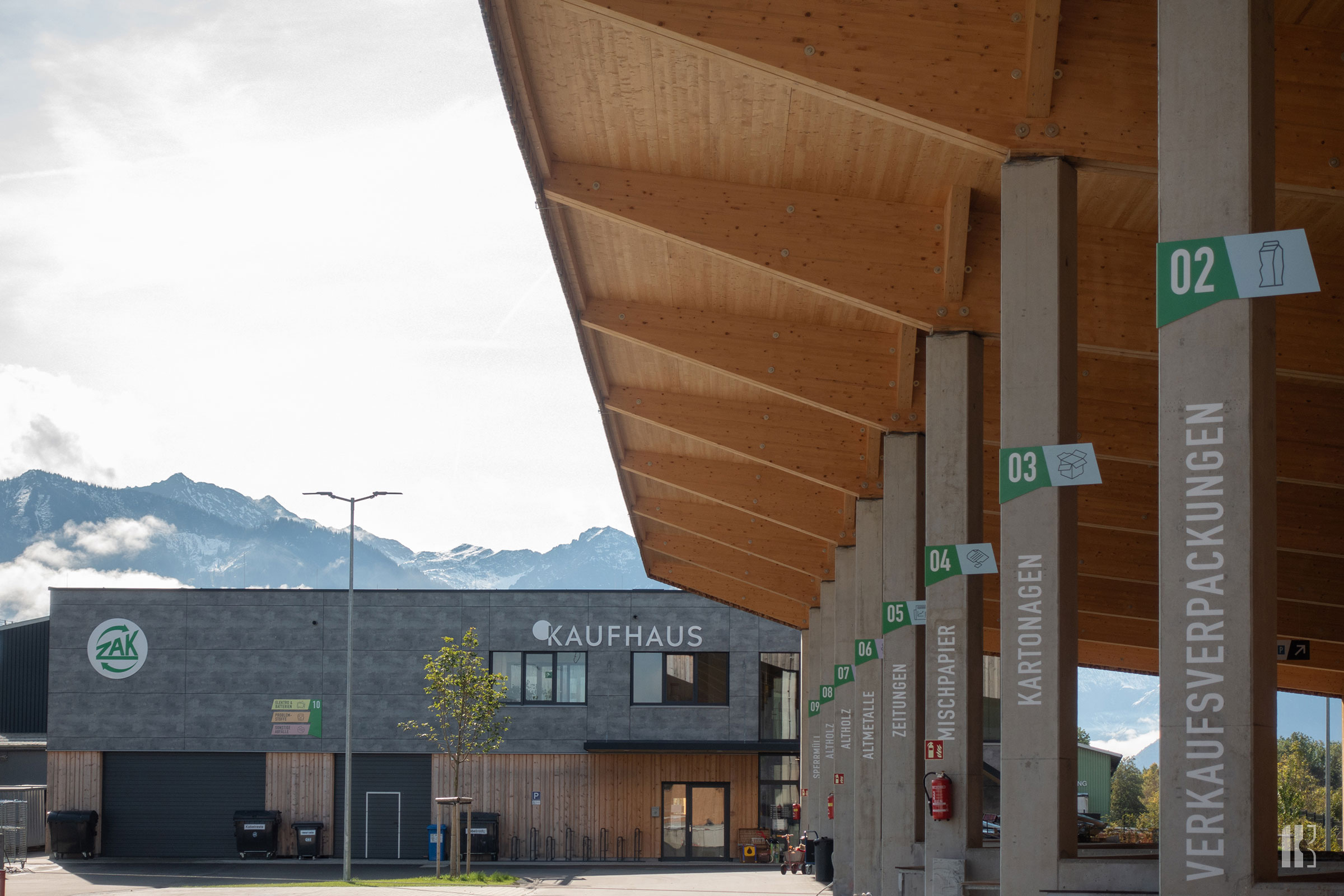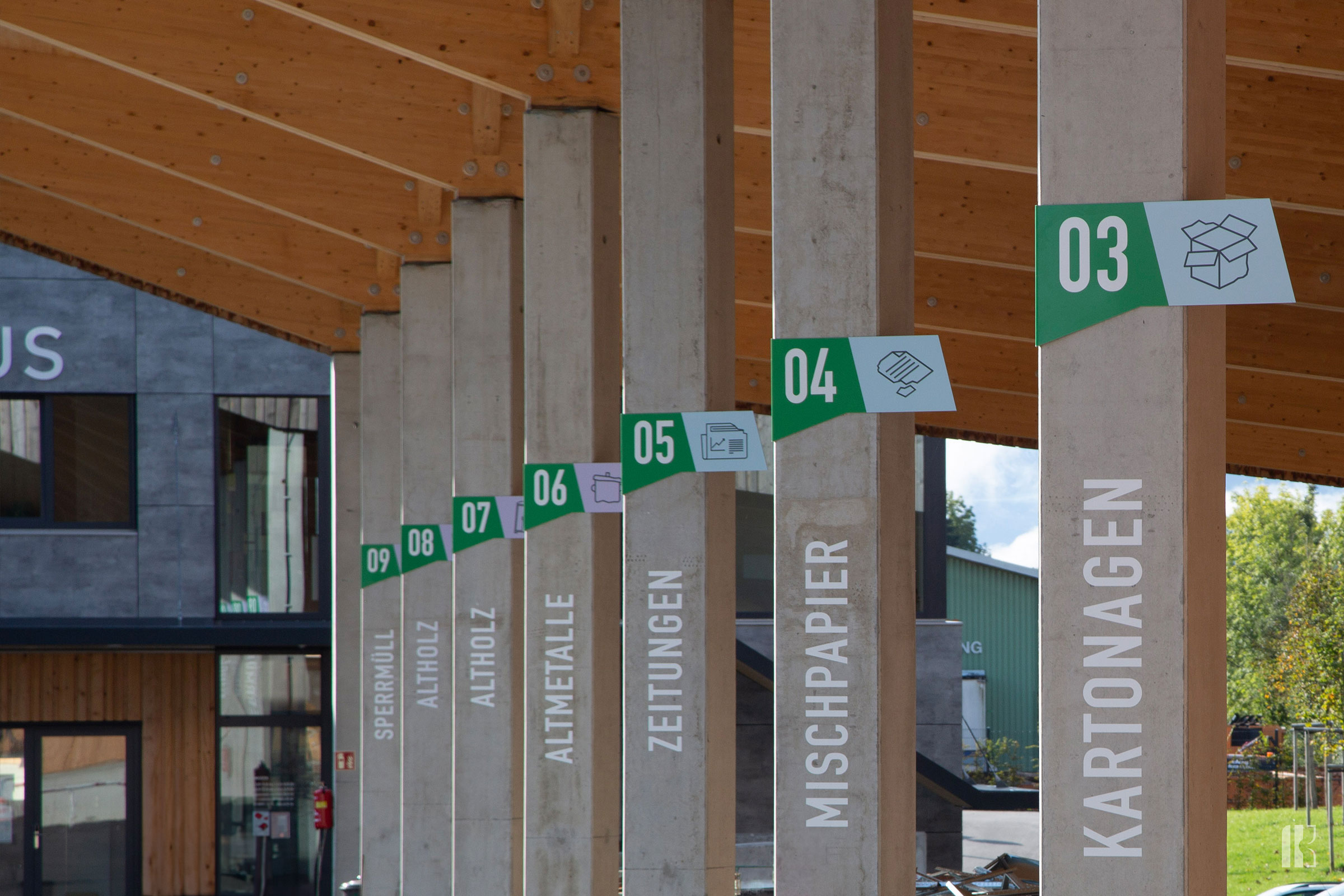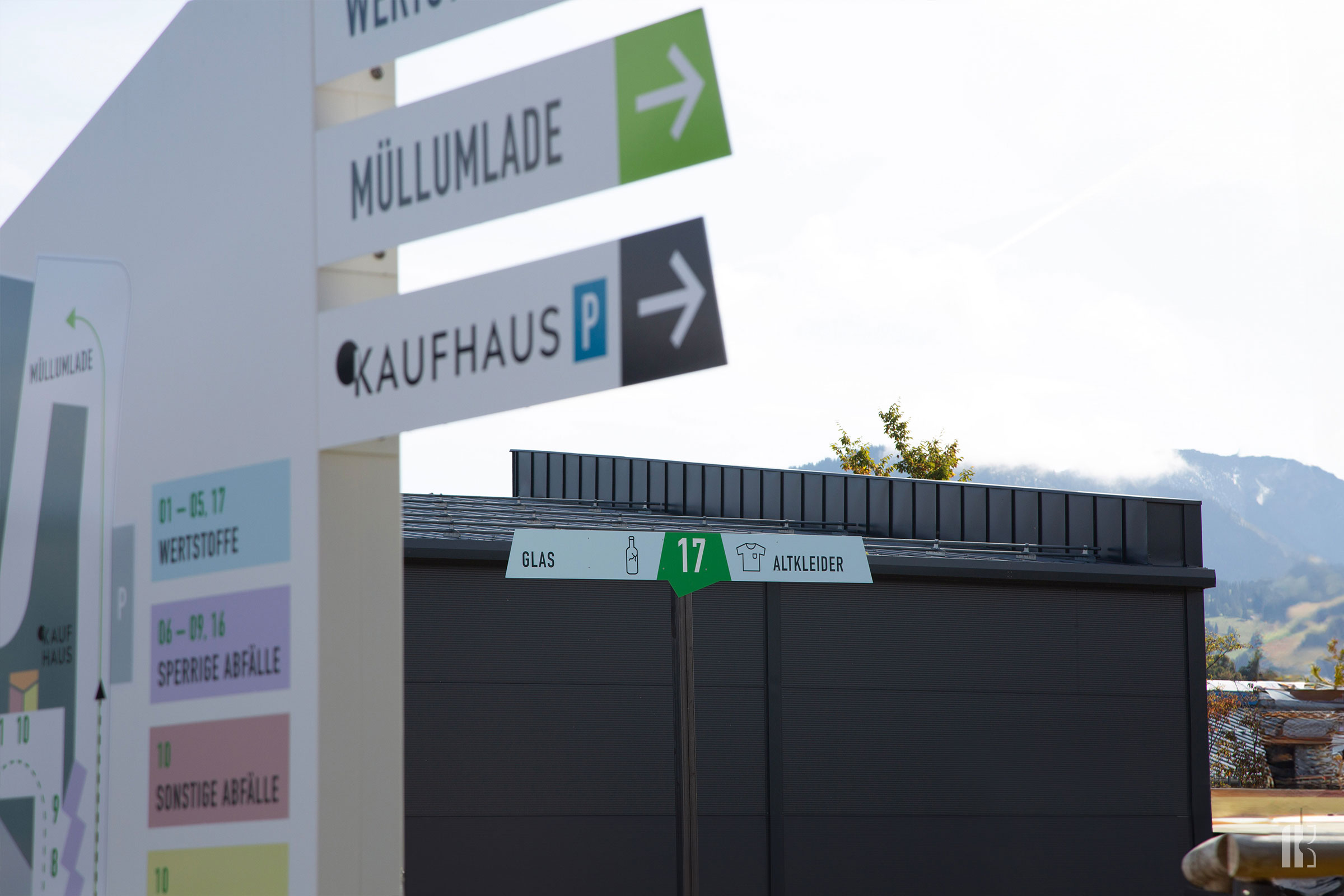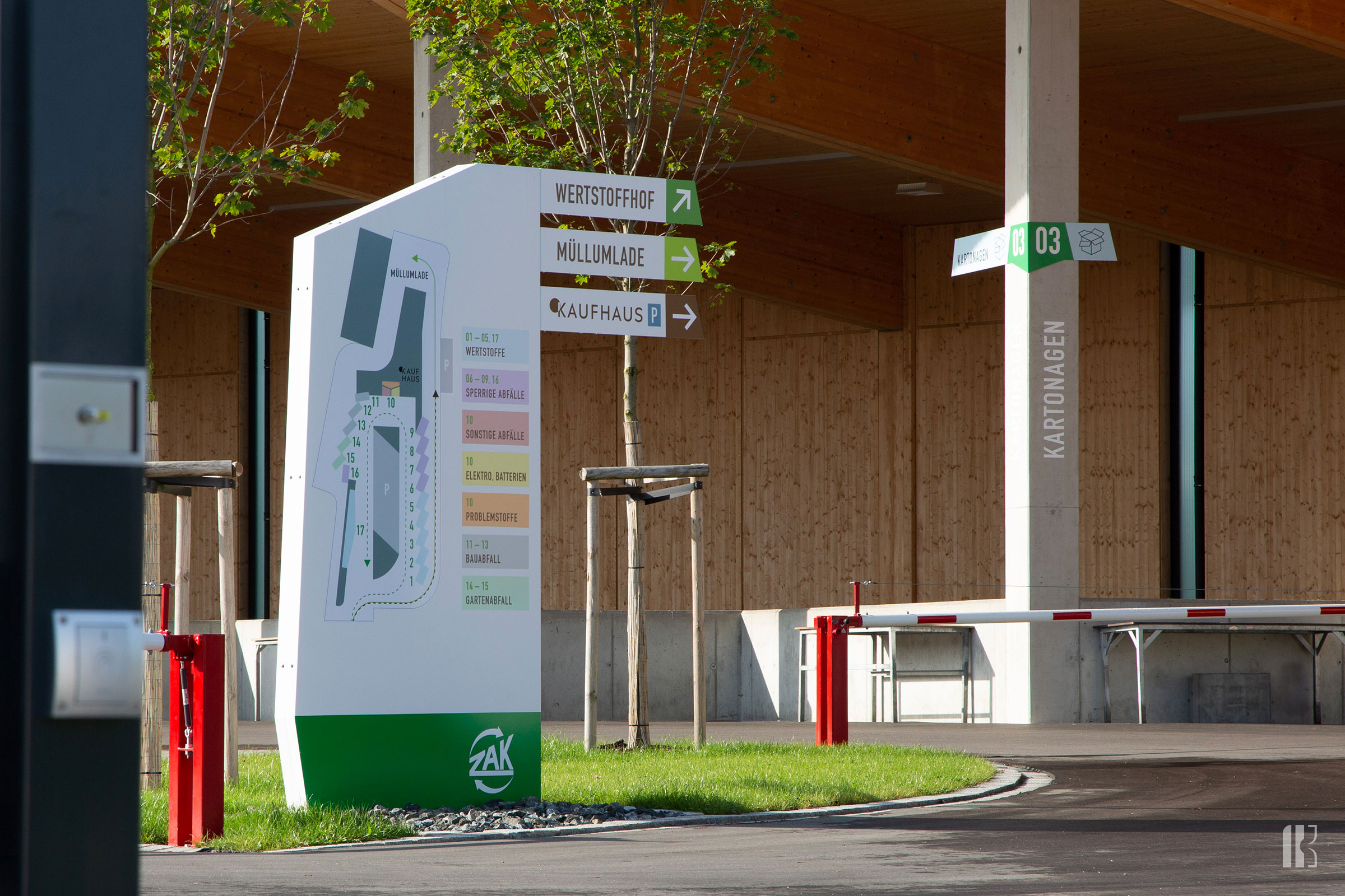 Das ZAK Werkstoffhof Leitsystem wurde erstmals mit der Neueröffnung des Wertstoffzentrums Sonthofen 2020 eingesetzt und wird derzeit auf weitere 39 ZAK-Wertstoffhöfe übertragen. Das Leitsystem und Beschilderungskonzept schafft unabhängig der heterogenen Architektur der Wertstoffhöfe eine eigene Identität und wird so zum Ausdruck der Raumidentität von ZAK. Die visuelle Kommunikation basiert auf einer guten Besucherlenkung und Orientierung im Außenraum.