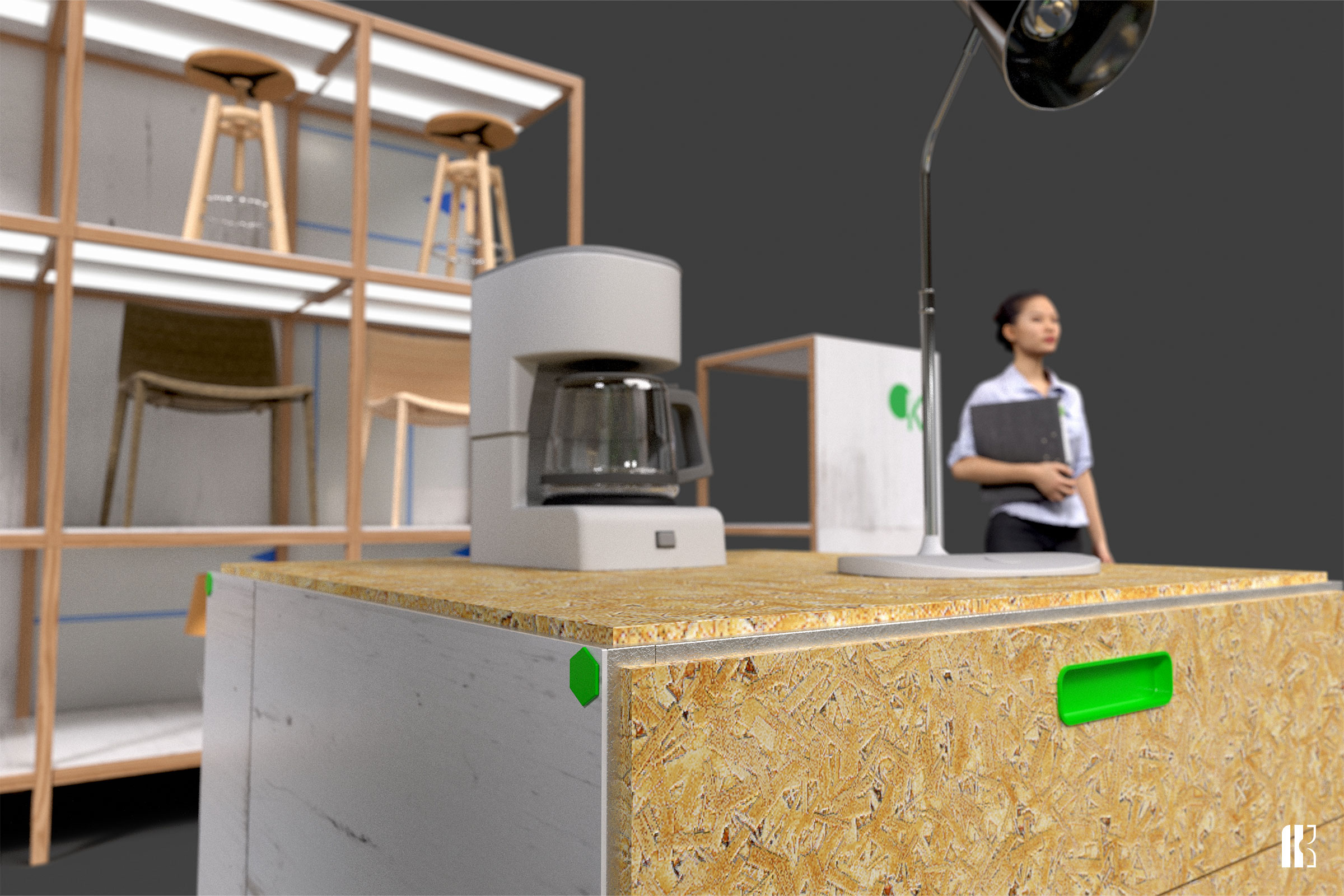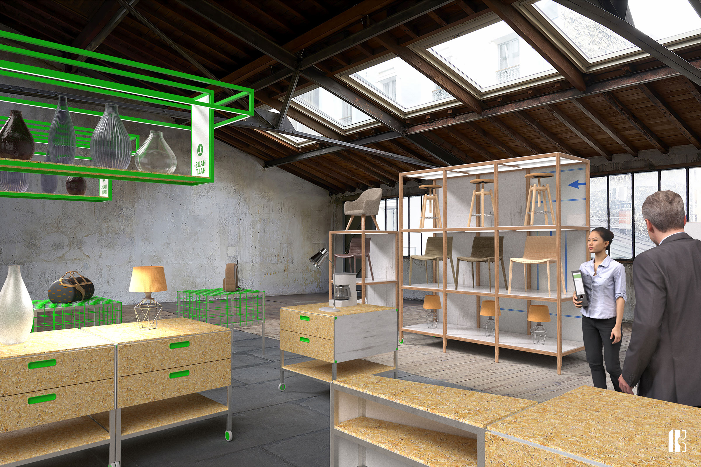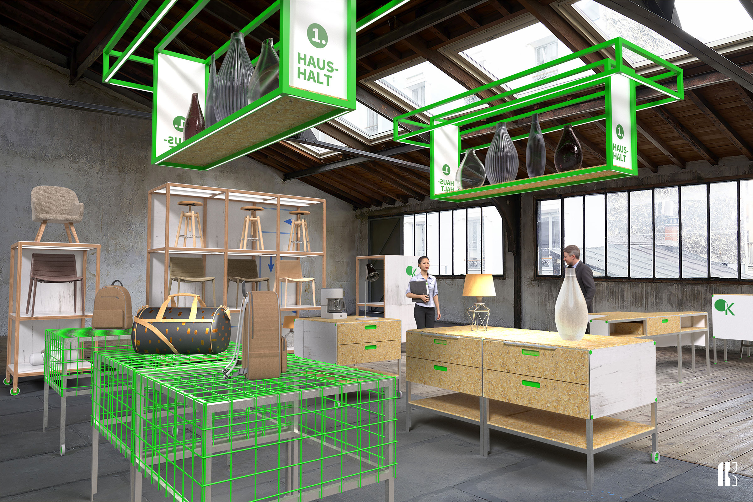 Aufgaben der ZAK Abfallwirtschaft GmbH sind Planung, Bau, Überwachung und Betrieb von Wertstoff- und Abfallentsorgungseinrichtungen im Allgäu. In den angeschlossenen ZAK-Kaufhäusern werden im Rahmen der Kreislaufwirtschaft gebrauchte Dinge aufbereitet und preiswert verkauft. Für die ZAK-Kaufhäuser entstand 2023 ein multifunktionales, an allen 4 Standorten einsetzbares Möbel- und Raumkonzept, das flexibel für den Verkauf einsetzbar ist. Durch Verwendung möglichst gebrauchter Plattenmaterialien und Profile aus der Kreislaufwirtschaft wurde ein einheitliches Innenarchitektonisches Erscheinungsbild mit eigener Identität zu schaffen.