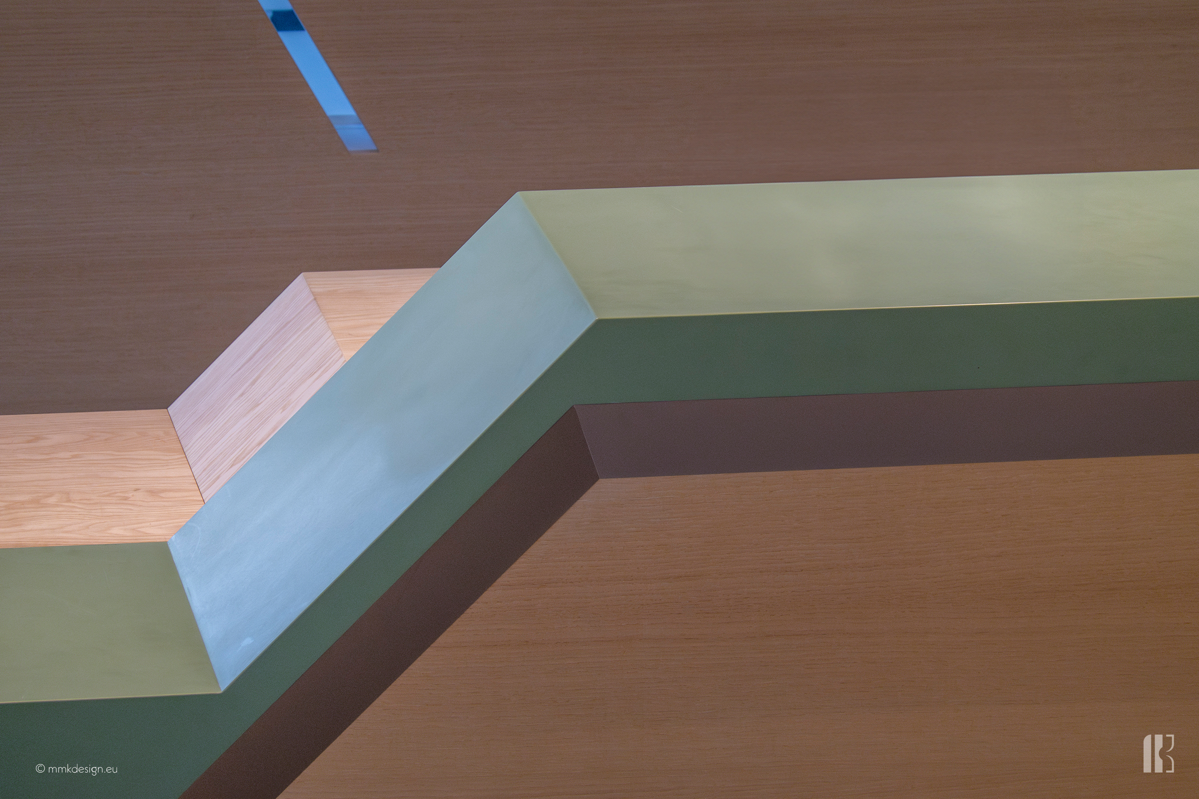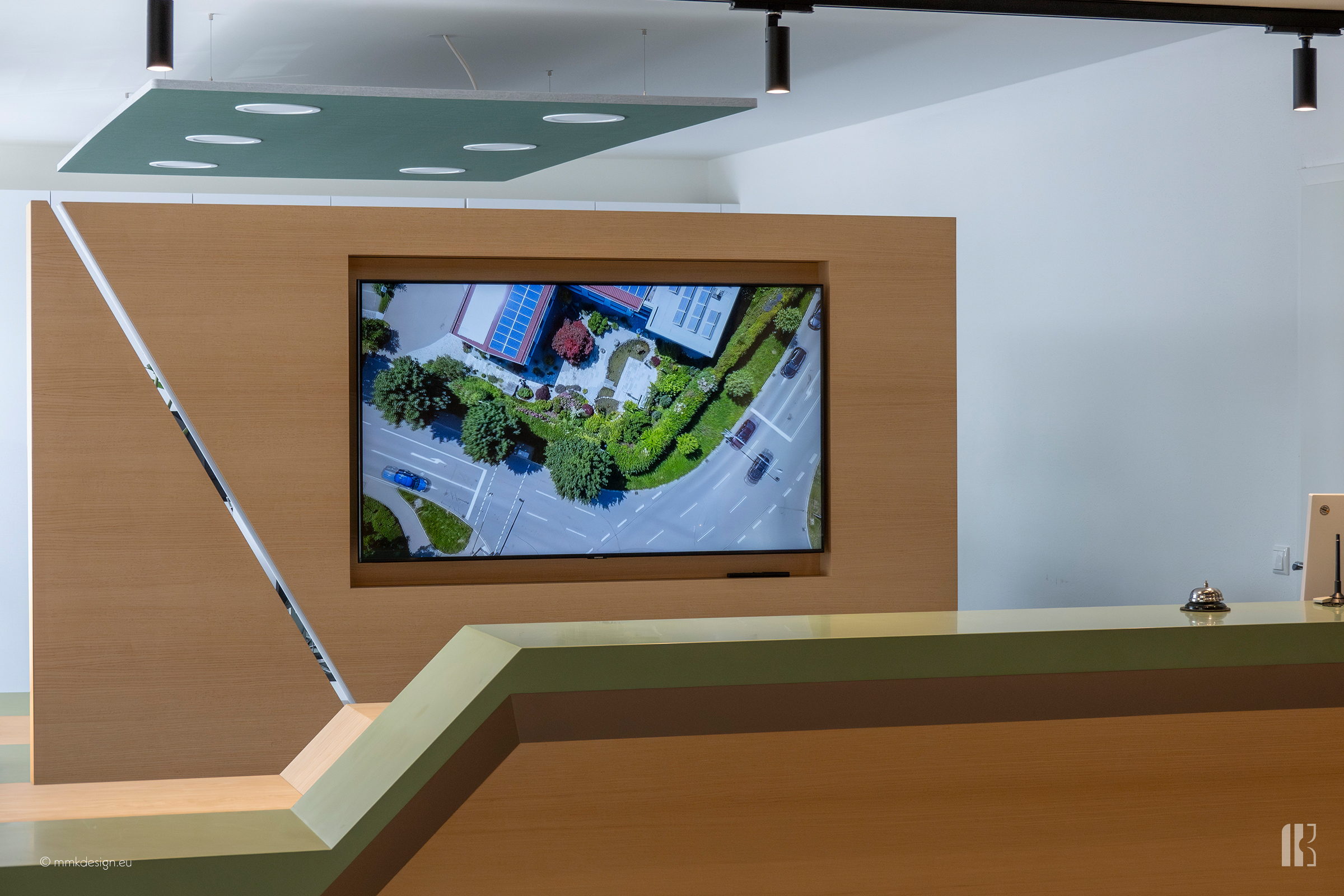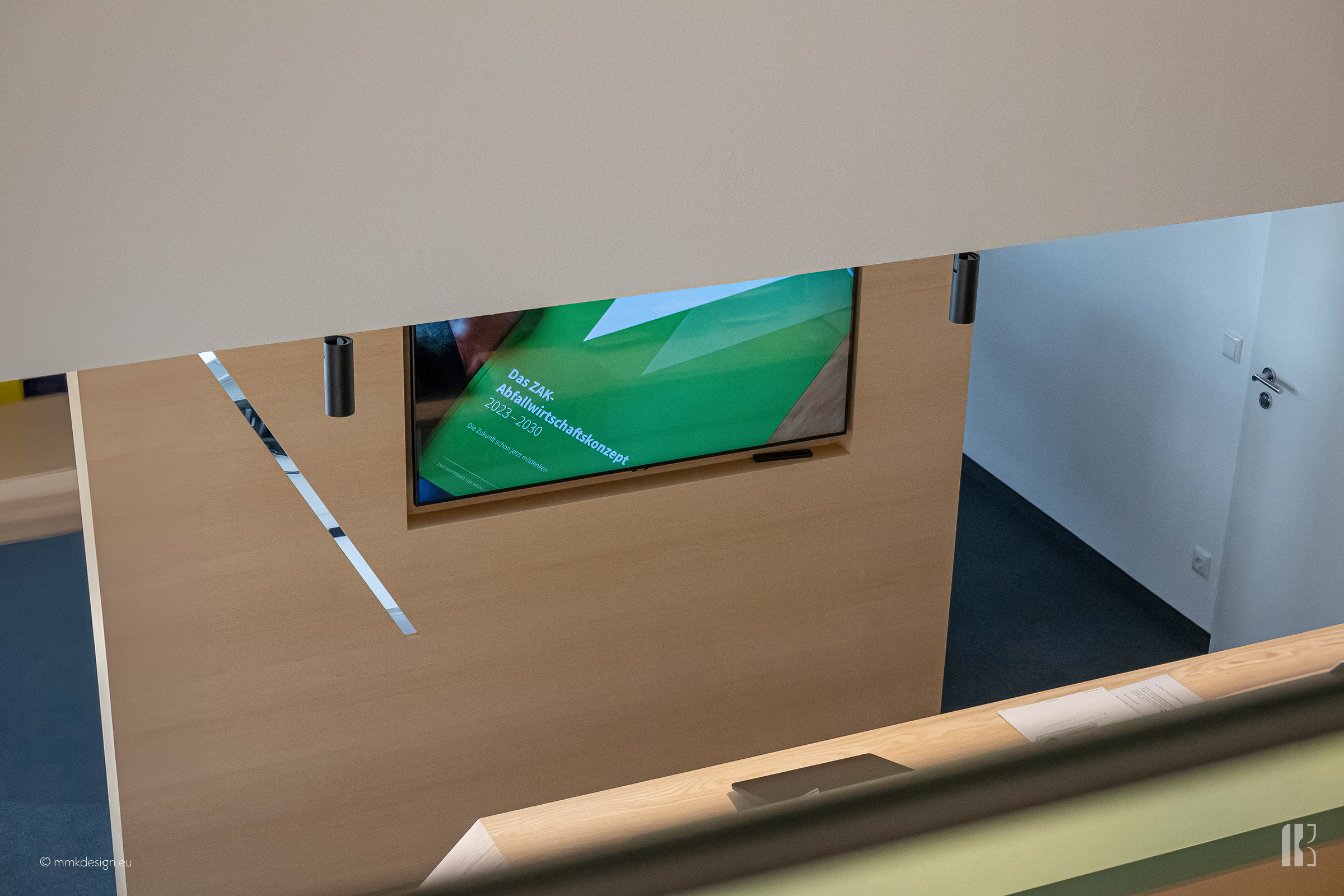 In der ZAK-Zentrale in Kempten wurde der Eingangsbereich und die Gänge mit angegliedertem Schulungsbereich 2023 innenarchitektonisch neugestaltet. Die ZAK Corporate Identity ist dabei in ein Material- und Raumkonzept übertragen worden, es entstand eine eigene Formensprache und ein Materialkonzept mit einem hohen Anteil an recycelten Stoffen mit akustischer Wirksamkeit.