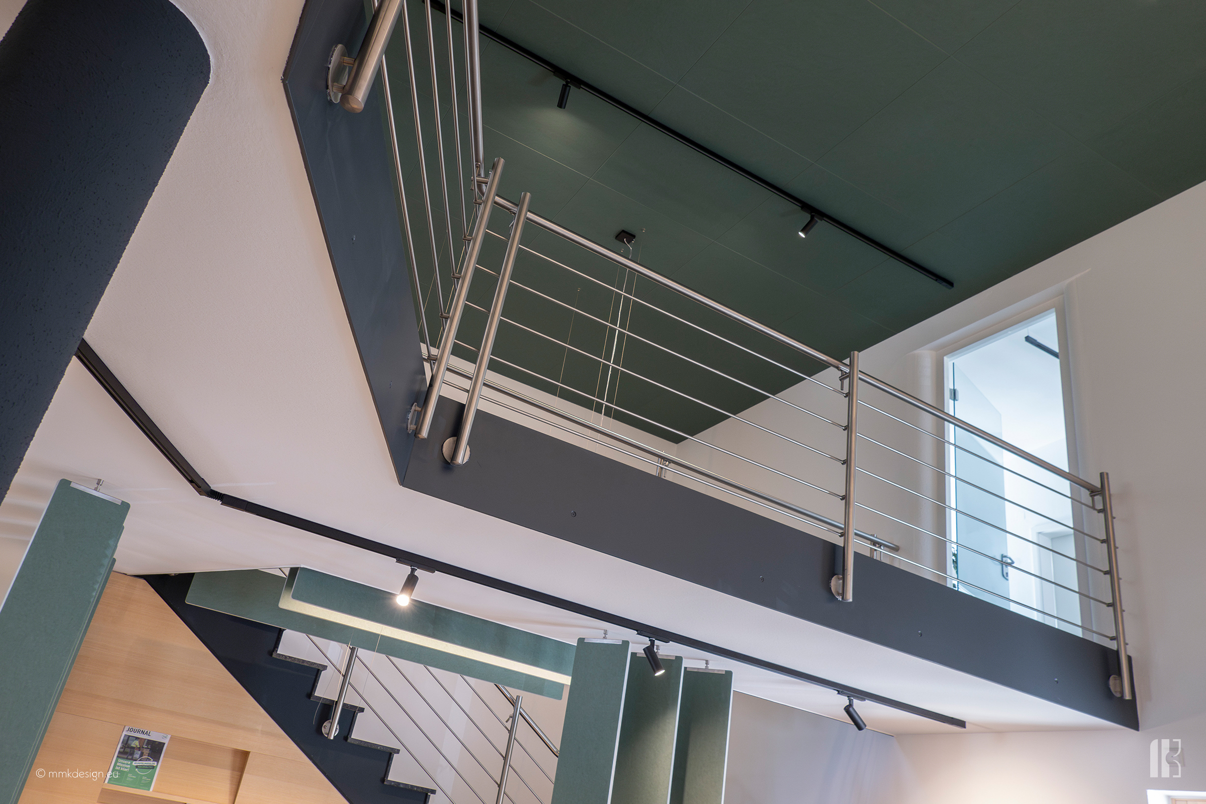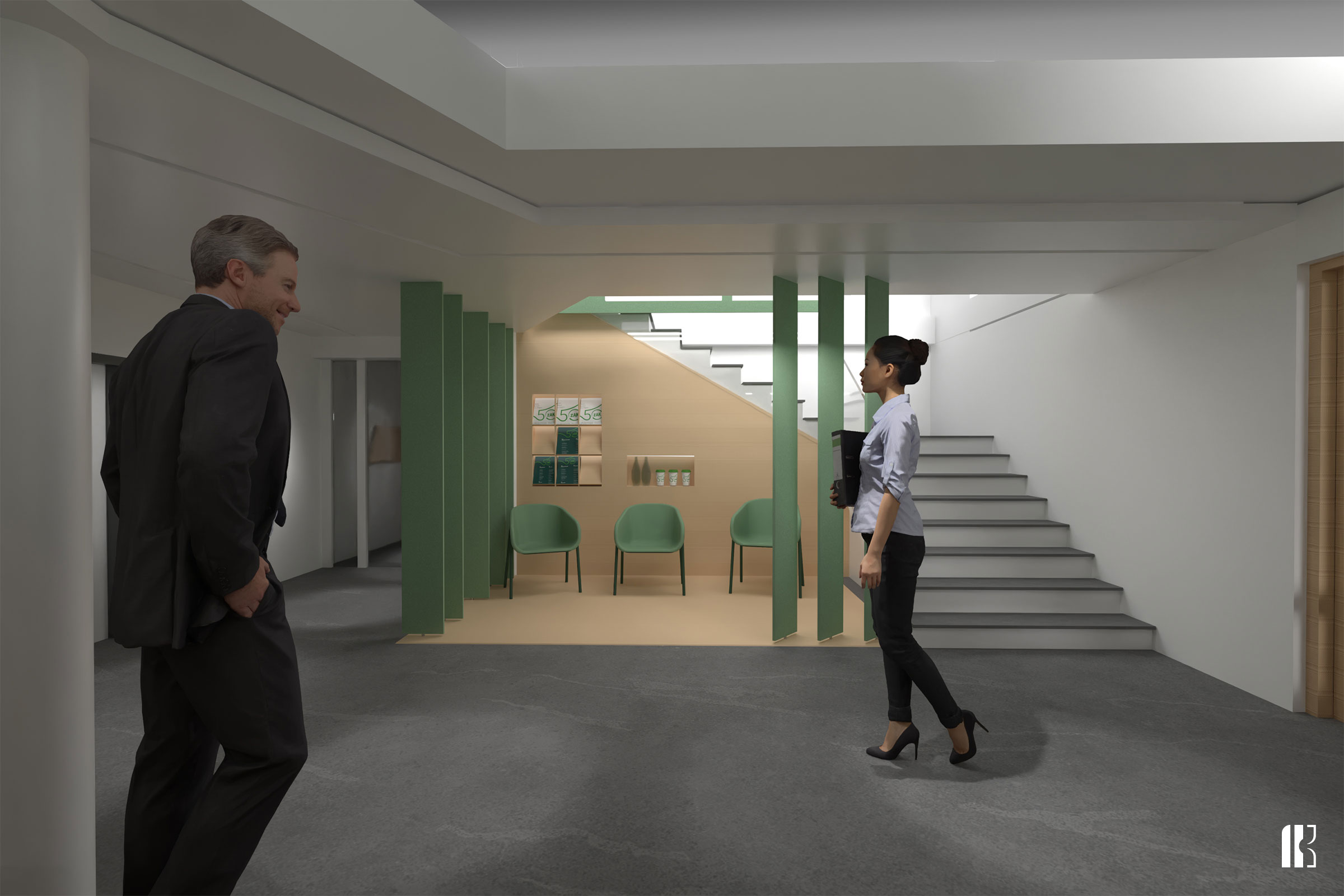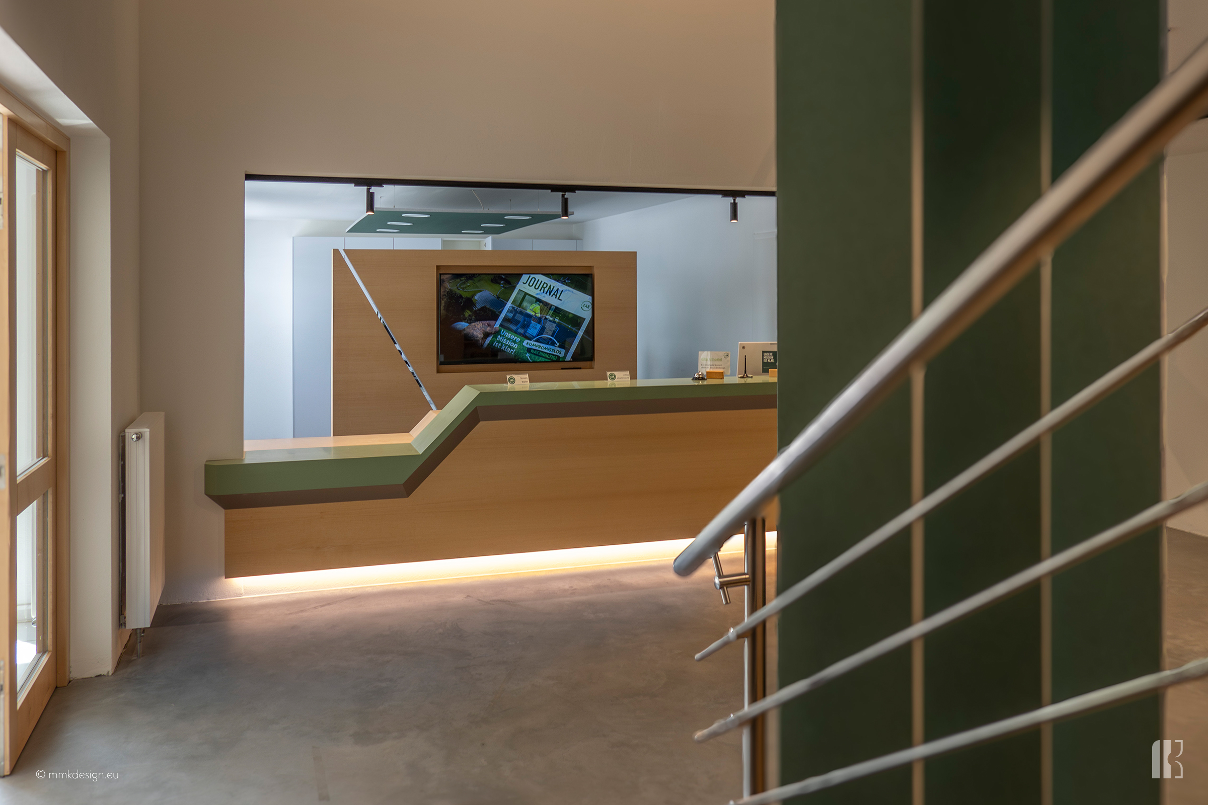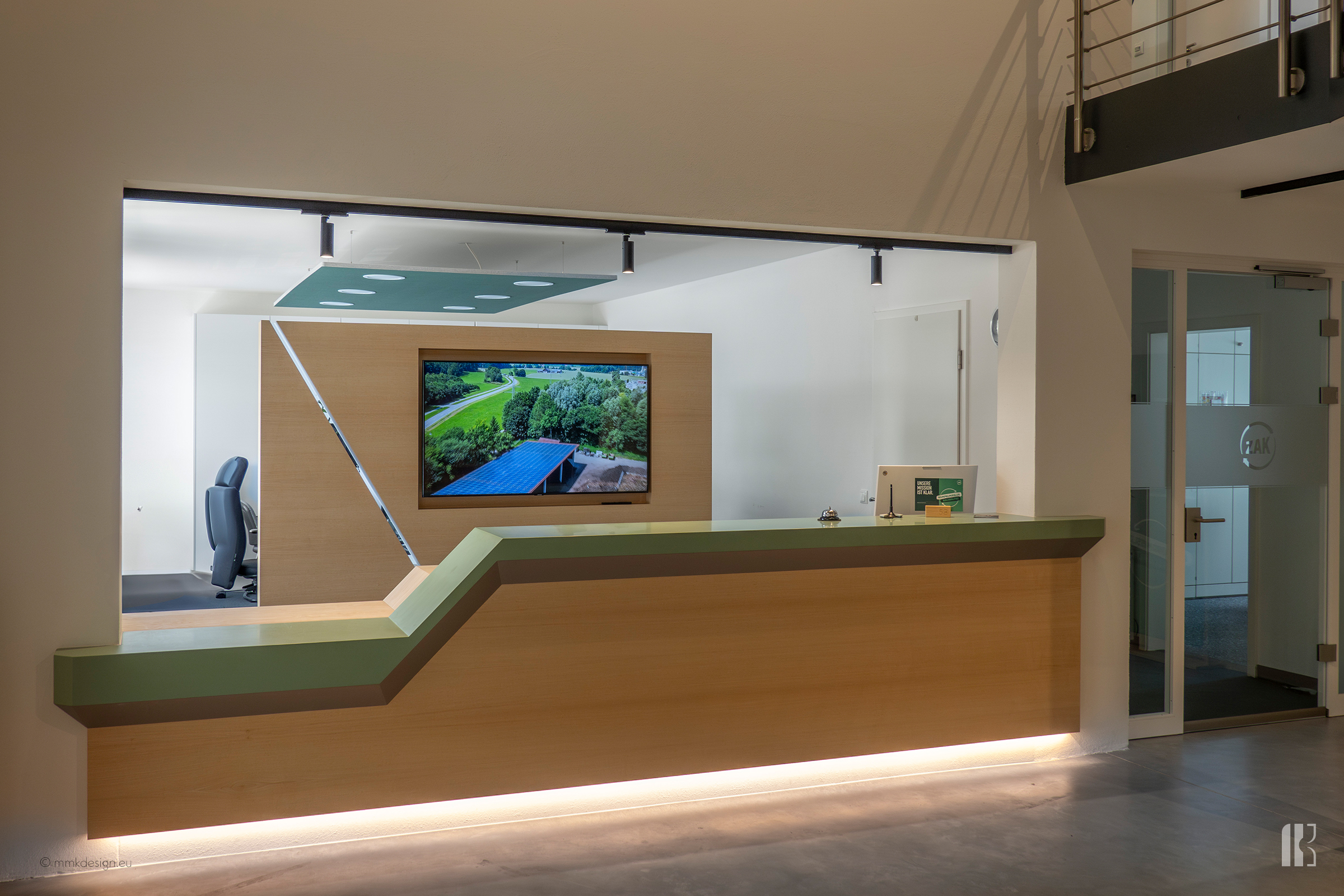 In der ZAK-Zentrale in Kempten wurde der Eingangsbereich und die Gänge mit angegliedertem Schulungsbereich 2023 innenarchitektonisch neugestaltet. Die ZAK Corporate Identity ist dabei in ein Material- und Raumkonzept übertragen worden, es entstand eine eigene Formensprache und ein Materialkonzept mit einem hohen Anteil an recycelten Stoffen mit akustischer Wirksamkeit.